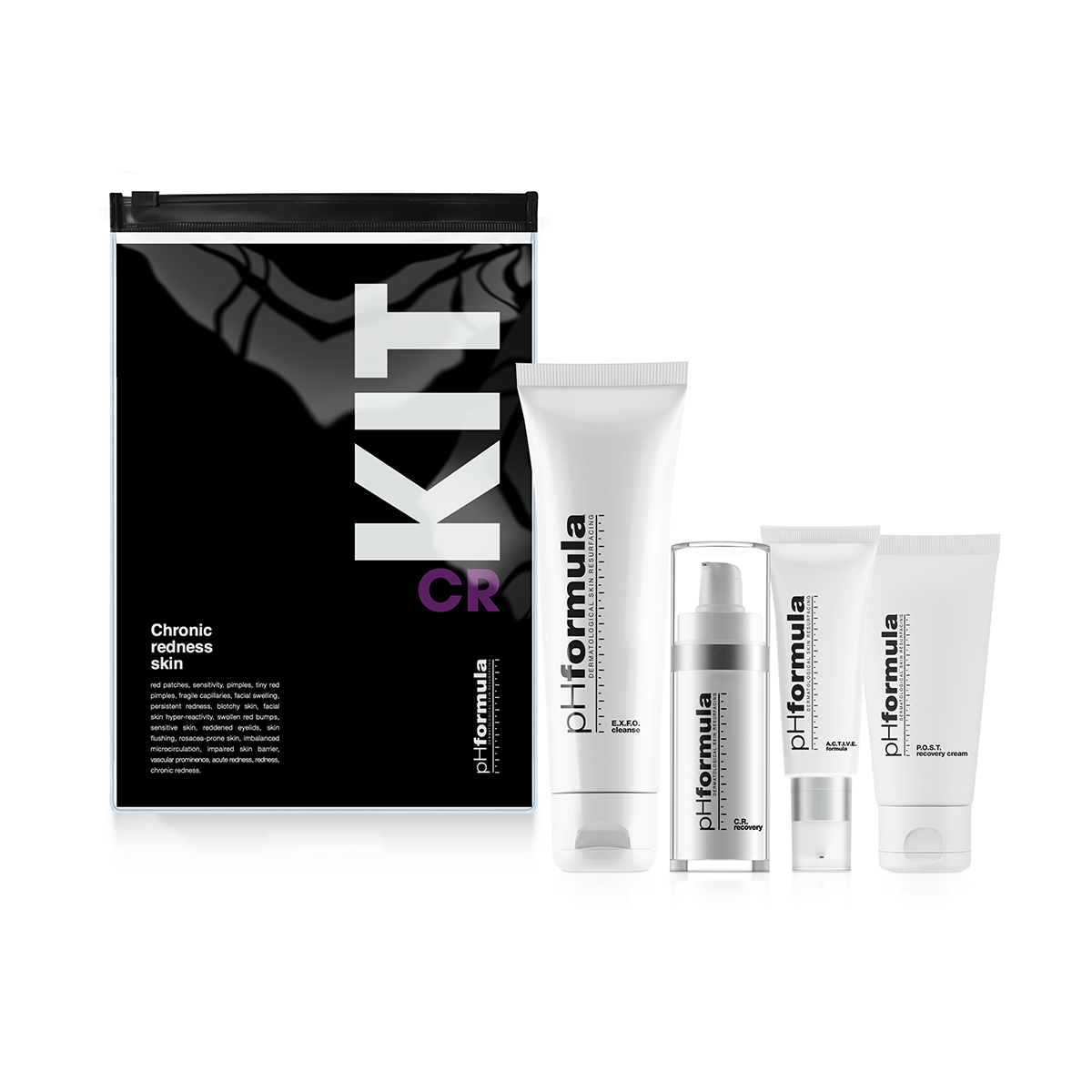 The pHformula C.R. skin resurfacing program is a comprehensive dermatological skin resurfacing system, that incorporates a distinctive blend of active ingredients designed to address skin redness. By adhering to the complete program, as recommended by your pHformula skin specialist, you can anticipate not only noticeable improvements but also the ability to safeguard your skin against future damage.