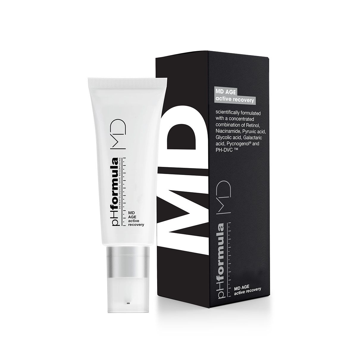 The AGE active recovery works in synergy with pHformula’s professional skin resurfacing treatments, providing numerous age-reducing benefits. AGE active recovery features a unique combination of active ingredients that works in synergy to assist in speeding up skin recovery and maintaining the overall health of the skin. The appearance of fine lines and wrinkles can be diminished by the potent combination of Niacinamide, Retinol and Pyruvic acid. The powerful antioxidants Pycnogenol® and Retinol provide protection against ageing-causing free radicals. The appearance of hyperpigmentation spots can be diminished by the synergistic action of Niacinamide, Galactaric acid and Retinol. Glycolic acid, Pyruvic acid and Retinol assists in collagen synthesis as well as cell differentiation and skin barrier function is improved, allowing optimum rejuvenation. The formulation also contributes to brightening the skin and assists in providing a more even-toned complexion.