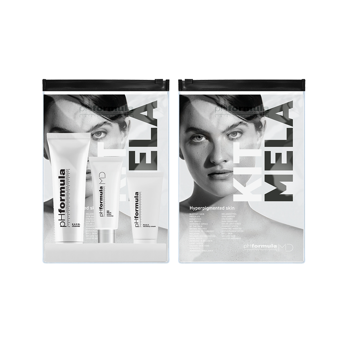 The MD M.E.L.A homecare kit offers a complete skin resurfacing regimen for hyperpigmented skin. This is the perfect introduction to the pHformula HOMECARE prescriptions.